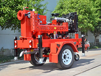 湖北荊州應急局驗收貝德科技半架式四輪移動排澇泵車